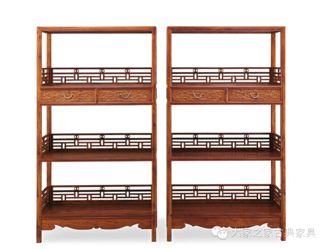 游艺—大家之家当代古典黄花梨家具集珍 黄花梨品字栏杆书架一对